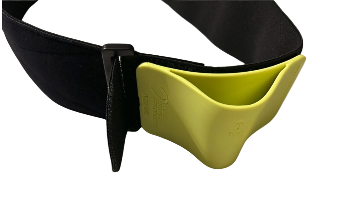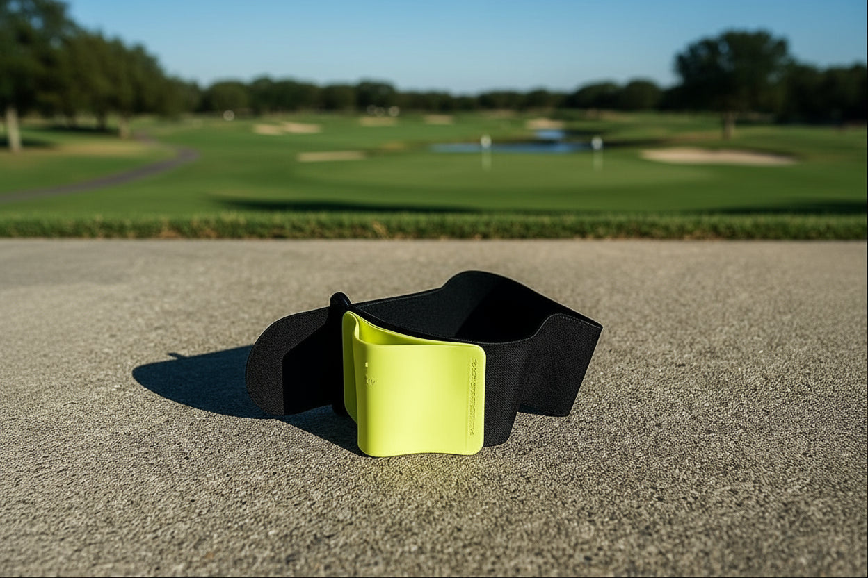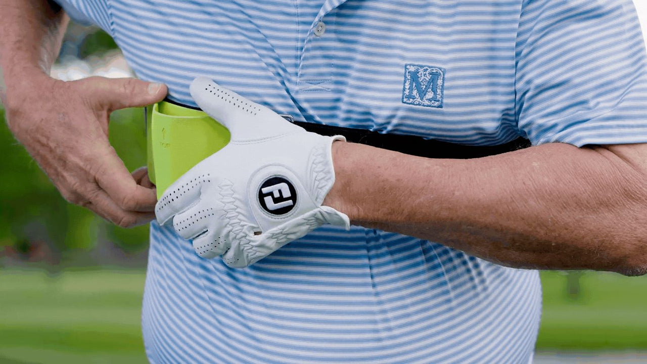 While wearing In-The-Slot, at address, your upper bicep will be tucked into the green cradle – the front of your elbow facing outward – and your right arm at an angle of about 25-30 degrees relative to your torso. The perfect Tour Pro position to begin your swing.