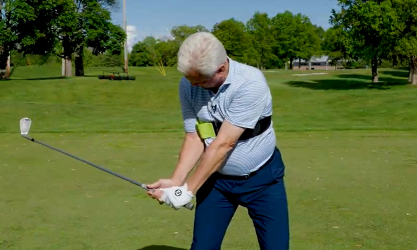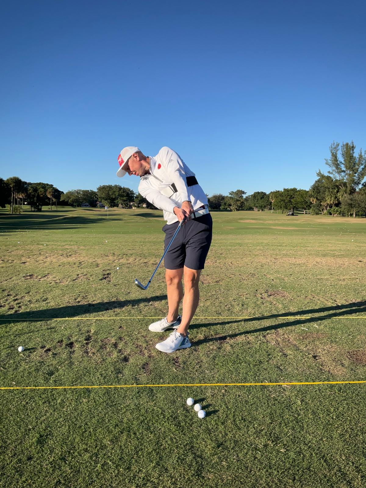 PRO TIP: Be aware that your body is not swaying or rocking back from your address position by staying connected.