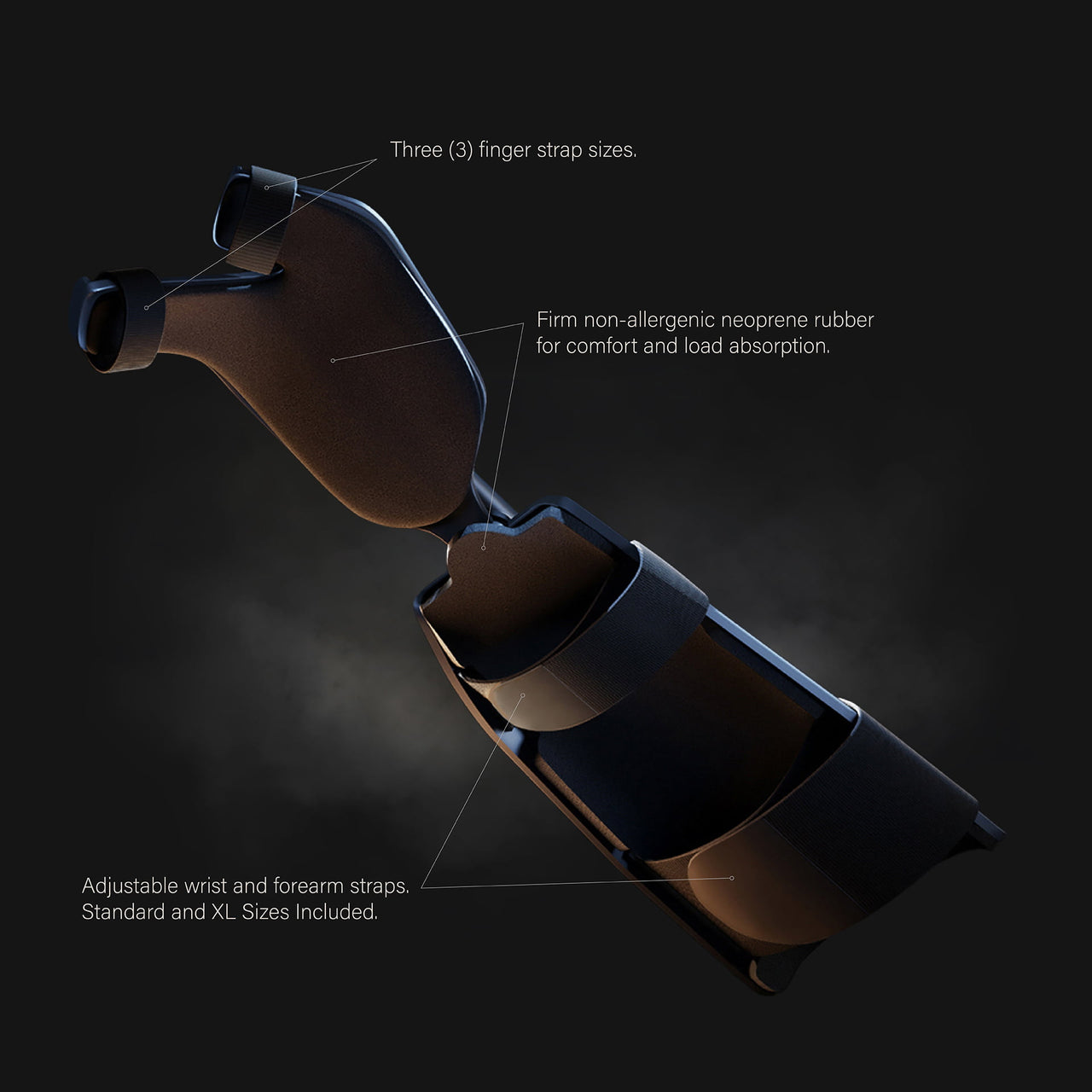 Interchangeable sizing for finger and arm straps ensure a secure, adjustable fit for varying body types - guaranteed to fit 99% of golfers.